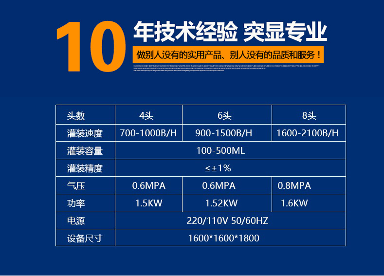 1、快速清洗、便于调整、容积缸体动作无极调速,适合不同规格、不同物料的灌装。充填量一次调整完毕,每个容积缸体可分别微量调节,灌装精度高。接触物料的材料为316不锈钢、硅橡胶、符合QS规范。