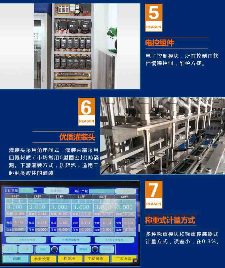 8、每个灌装头均有称重和反馈系统,可对每个头的灌装量进行设置和微量调整。