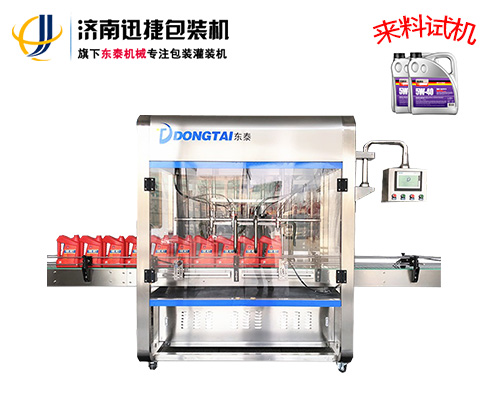 全自动润滑油灌装主机采用流量计的灌装方式,一对一系统设计,4头灌装机采用4套供料系统单灌装主机采用流量计的灌装方式,一对一系统设计,每套系统都可单独使用不受影响,设备可完成不同瓶型的自动定量;灌装头自带回吸功能,防止油品外溢,灌装机顶部带有储料箱,储料箱内部免存料设计,储料箱内要有高、低液位装置,高、低液位信号要求是24V、4~20mA,由接线端子输出。