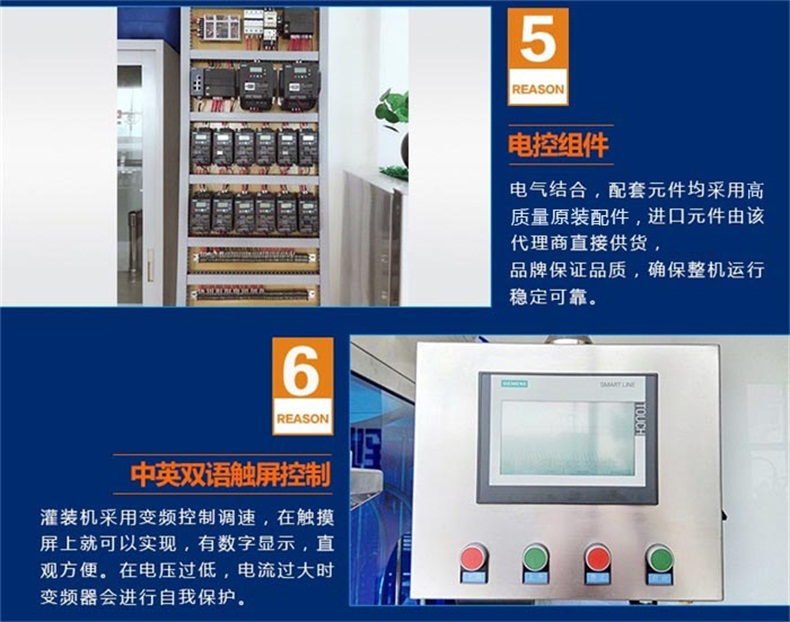 7.其他厂家采用调速电机,靠手动旋转电机上的转轮来改变输送带的速度,调整只能凭感觉极为不方便。我们的灌装机采用变频控制调速,在触摸屏上就可以实现,有数字显示,直观方便。在电压过低,电流过大时变频器会进行自我保护。