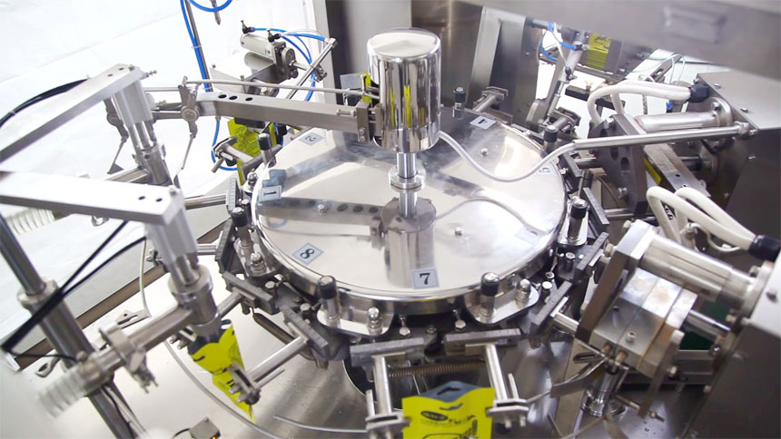 袋宽调节方便:由电机控制,只需通过一个按钮就可同步调节各组机夹;