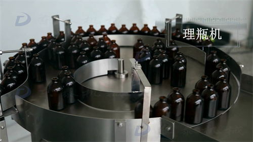 转盘式理瓶机将杂乱的空瓶整齐码好送入输送带