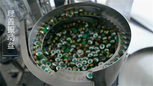 理盖振动盘将盖子进行整理,送入滑道,后滑入挂盖头