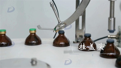 瓶子在经过挂盖头时被挂上盖子