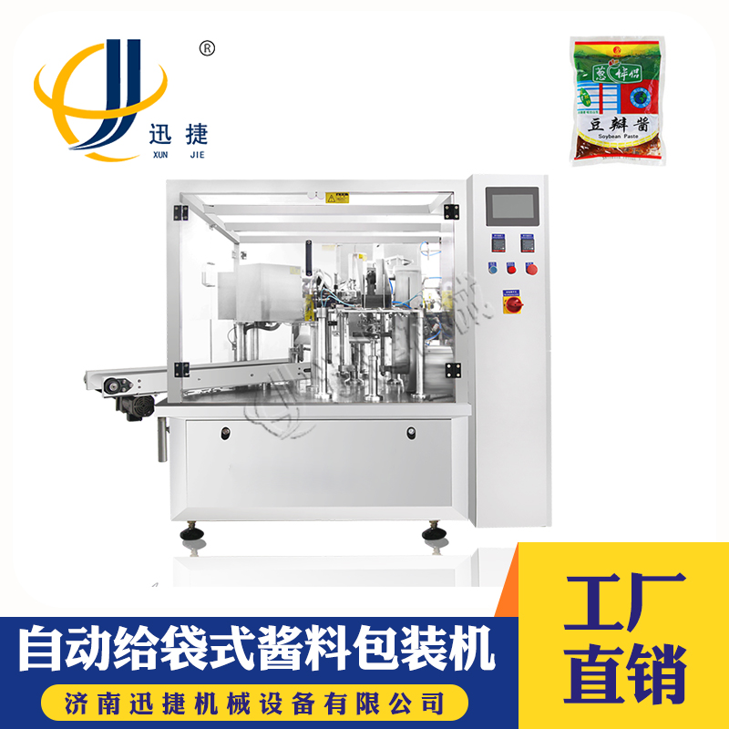 迅捷机械作为专业的包装机厂家,明白不同的酱料产品针对包装的要求自然而然是不一样的,而且随着人们对于食品卫生的关注,传统式的手工包装早已被我们所抛弃,所以酱料包装机必须要不断创新技术含量,只有这样才可以在销售市场中出类拔萃,并持续不断的实现智能化、科技化的发展趋势。现如今酱料包装机更好的保障被包装酱料产品的质量,整个设备使用304不锈钢从根源上杜绝各种污染,从而在产品安全和产品质量上更有保障。现如今酱料包装机在食品行业中有着非常大的发展趋势空间,而怎样更好的站稳销售市场则是她一直以来考虑的问题,毕竟销售市场发展晚一些其基础力量薄弱,酱料包装机只有持续不断探索并创新发展,才可以在外观、产品质量、包装要求上满足客户的需要,酱料包装机从而让自身更好的前进和成长。