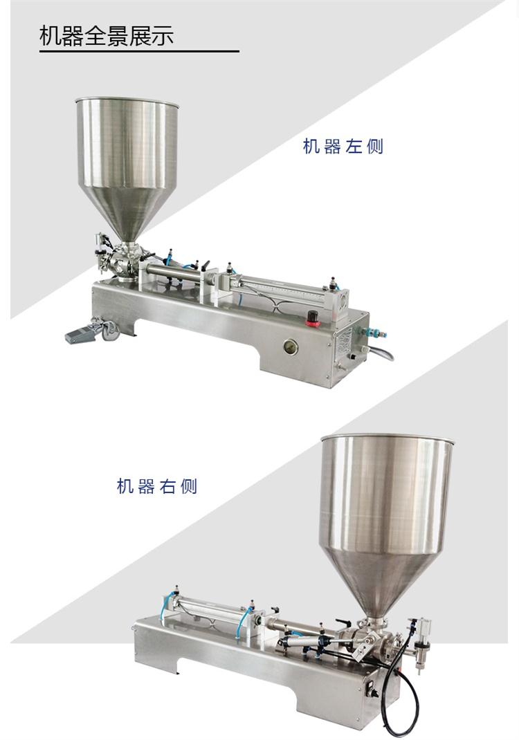 气动膏体灌装机主要适用于化工、食品、日化、药品、农药、润滑油等行业的液体膏体等物质的定量灌装,该灌装机缸体、机壳、料斗均由不锈钢材质制成,活塞有四氟乙烯材料制成,气动部分均采用气动元件,符合GMP[要求,气动膏体灌装机的灌装量和灌装速度可任意调节,拥有脚踏开关和自动灌装功能,精度高,结构简洁,操作便利。