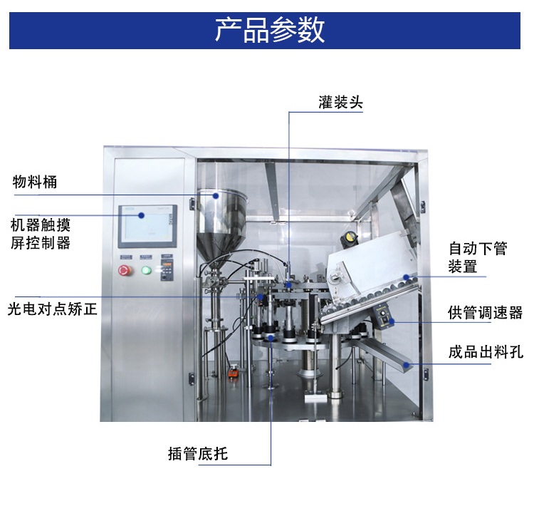 软管灌装封尾机适用于医药、食品、化妆品、日用化工用品等行业的塑管、铝塑复合管灌装封尾。软管灌装封尾机可将各种糊状